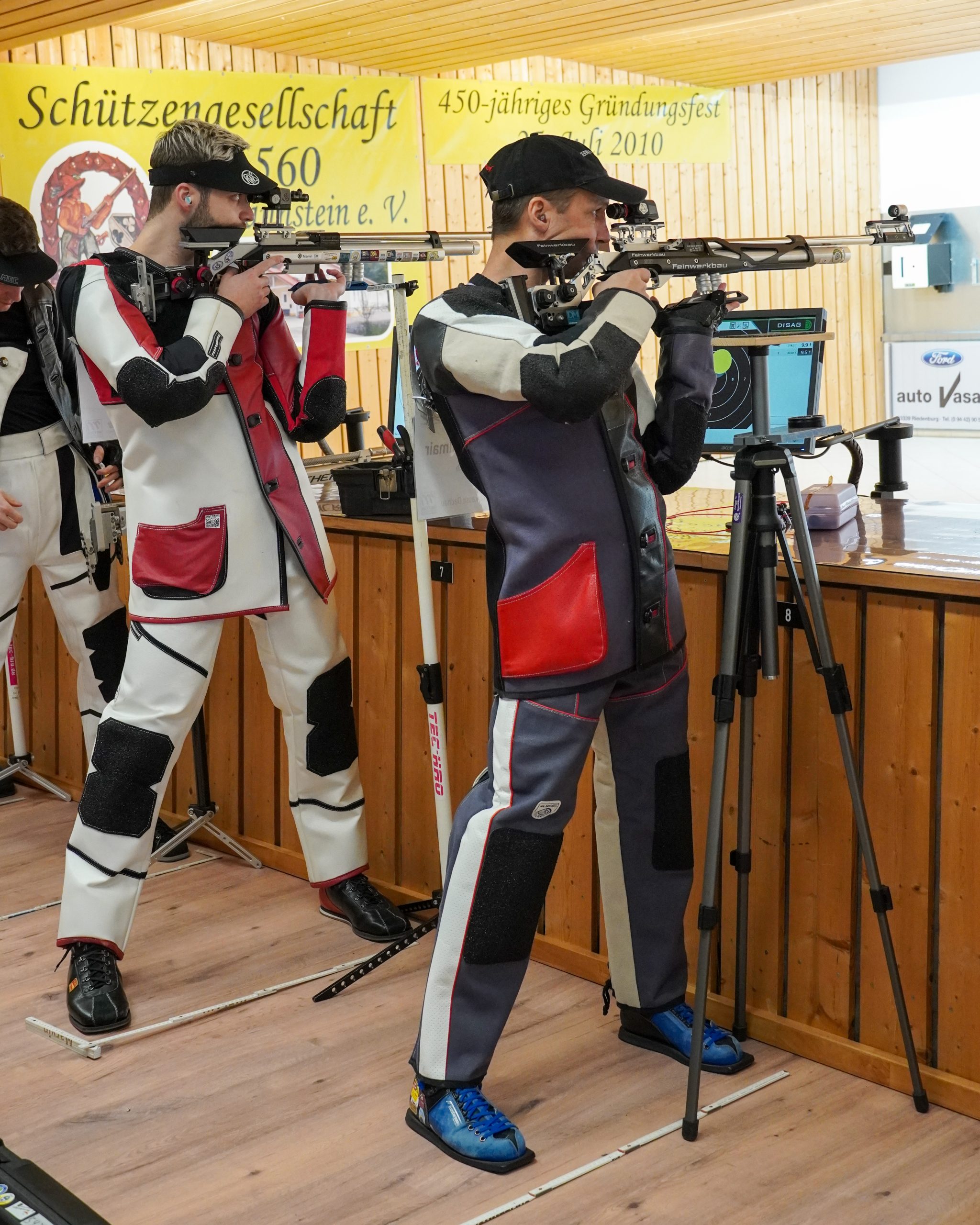 Im Wettkampf gegen Mendorf sah es anfangs lange nicht gut für unsere Mannschaft aus. Lara hatte mit Anpassungen am Gewehr zu kämpfen. Erst nach dem Rückbau kam sie in die Spur, musste den Punkt dennoch abgeben, ebenso Marvin, der anfangs nicht in den Wettkampf fand. Souverän hatte Hanna bereits als Erste ihren Punkt eingefahren und auch bei Constantin zeigte sich frühzeitig eine Führung. So lief die Entscheidung auf Evas Partie hinaus. Ihre Gegnerin war deutlich schneller. Damit stand jedoch die Vorgabe und Eva brachte den Punkt, mit einem Ring Vorsprung, ins Ziel.