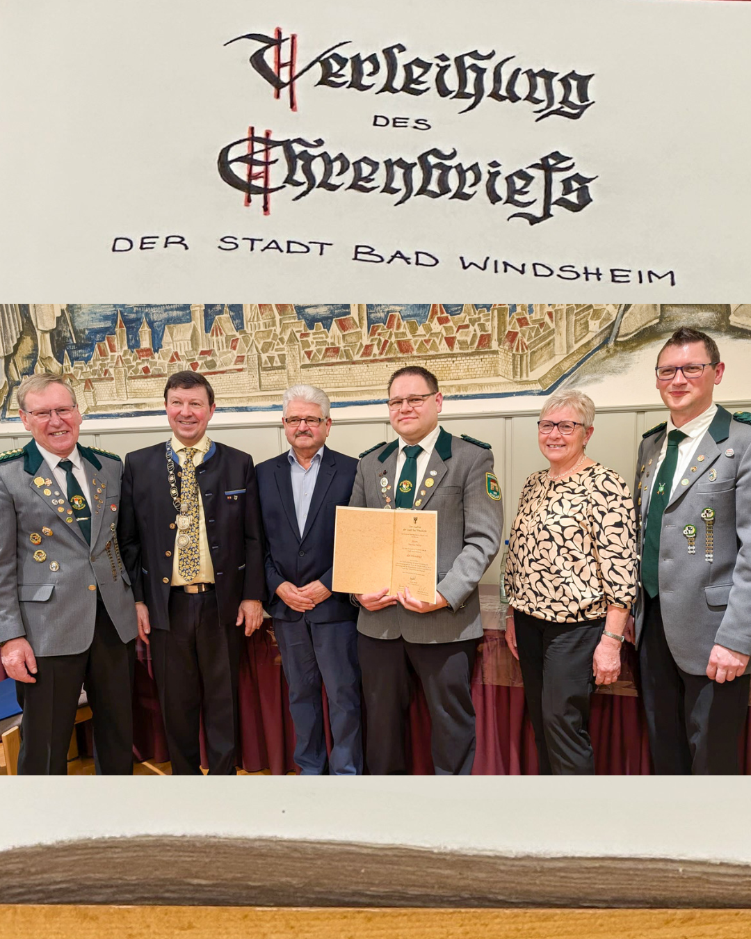 Im Beisein unseres Ersten Schützenmeisters Holger Hufnagel und Ehrenschützenmeisters Hans Rabenstein wurde unser Sportleiter Markus Retta am vergangenen Mittwoch bei der feierlichen Stadtratssitzung mit dem Ehrenbrief der Stadt Bad Windsheim ausgezeichnet!