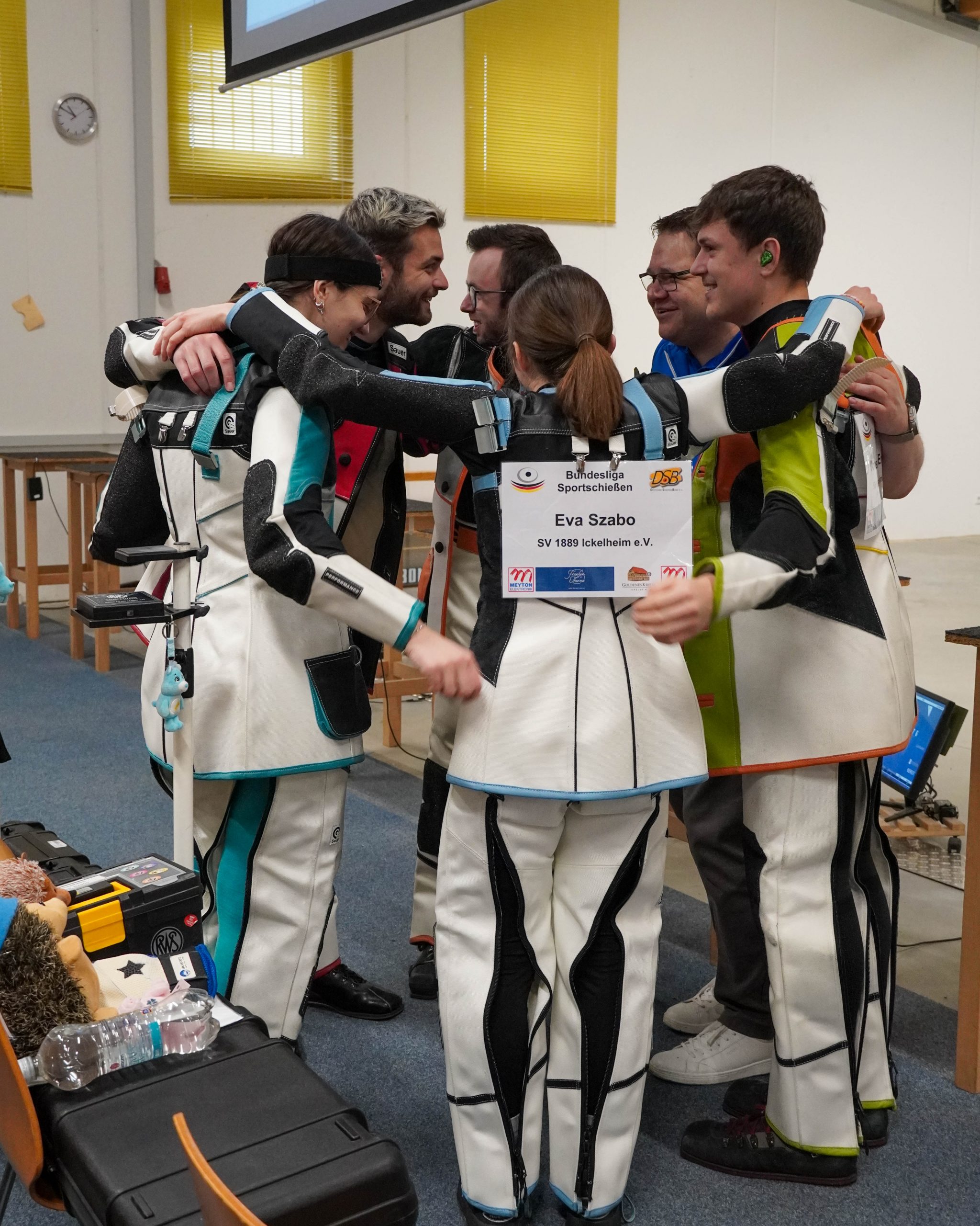 Mit 1943 und 1938 Ringen blieben wir dann jedoch deutlich unter unseren Möglichkeiten und belegten am Ende Platz 5. Unsere Einzelergebnisse waren: Hanna Stubenrauch 396/396, Marvin Ott 389/388, Constantin Engler 390/385, Eva Szabo 386/387 sowie Jonas Szabo und Renate Brehm mit jeweils 382 Ringen.