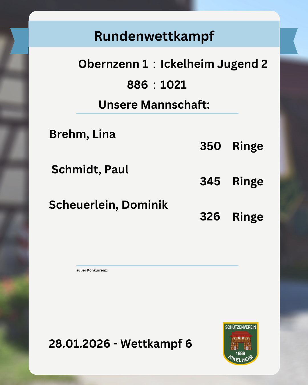 Zum Derby reiste unsere Zweite Jugendmannschaft nach Obernzenn. Hier gab es einen deutlichen 1021:886-Ringe-Sieg für unsere Jungschützen.
