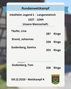 Mit jeweils 383 Ringen erzielten Katharina Ultsch und Johannes Popp die besten Einzelergebnisse unsererseits.