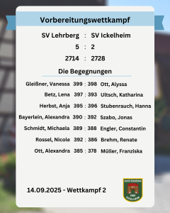 In 4 Wochen startet für unsere Erste Mannschaft die Saison in der 2. Bundesliga Süd, um bis dahin wieder im Liga-Modus anzukommen, stehen einige Vorbereitungswettkämpfe an. Zum Auftakt der Vorbereitung konnten wir den SV Lehrberg aus der Bayernliga Nordwest bei uns begrüßen.